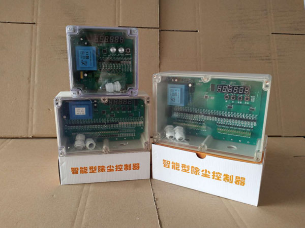 按中間的按鍵是開始設定參數,左右兩個按鍵換頁,上下兩個按鍵修改參數,修改后換到確定頁按中間的按鍵確定或到取消頁面取消。正常顯示按左鍵進入手動,左按鍵是氣缸手動(沒氣缸不用), 下按鍵是脈沖閥手動,右按鍵是脈沖閥移位,上按鍵是卸灰手動。注意:1. P1:提升閥數、P2:脈沖閥數、兩項為互鎖參數,以_所設定的輸出點數不大于輸出路數。分室除塵器(有提升閥)要先設定脈沖閥數一個室(組)有幾個脈沖閥設置為幾個。2. P7: 周期間隔、P9: 卸灰間隔,當不需要時請設置為0, 以關閉對應功能。3. P8: 卸灰時長,卸灰時長為獨立計時器,卸灰計時與周期間隔等互不影響。