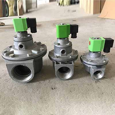 電磁脈沖閥的特征是閥的空氣進出口管呈90度直角。閥內的膜片把脈沖閥分成前、后兩個氣室,高壓氣從進氣口接入,進入下氣室,當脈沖閥未得電時,氣體通過上下兩殼體的恒壓管道以及其中的節流孔進入減壓室,由于閥芯在彈簧的作用下堵住泄壓孔,氣體不會排出,令減壓室和下氣室的壓力一致,而在彈簧作用下,膜片將噴吹口堵住,氣體不會沖出。當脈沖閥得電時,閥芯在電磁力作用下向上抬起,泄壓孔打開,氣體噴出,由于恒壓管道節流孔的作用,泄壓孔的流出速度大于減壓室恒壓管氣體的流入速度,令減壓室壓力低于下氣室的壓力,下氣室的氣體將膜片頂起,打開噴吹口。
