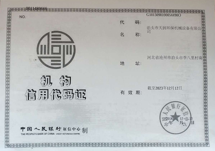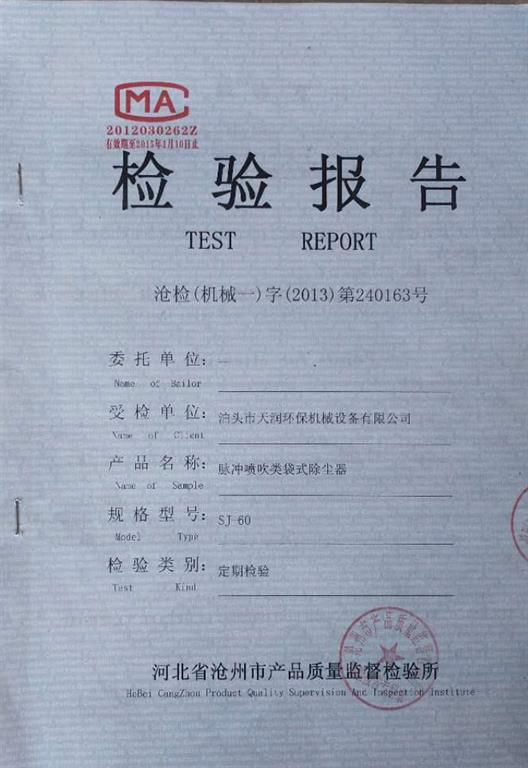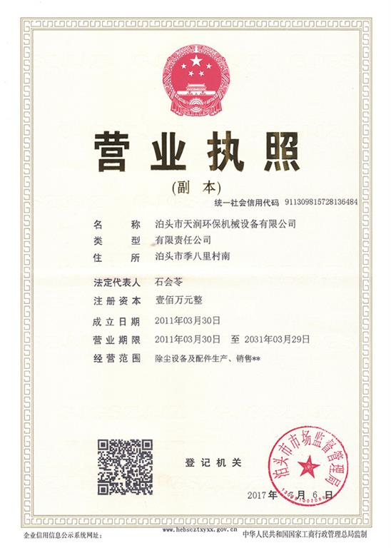 除塵器布袋骨架|除塵器濾袋-公司資質 -泊頭市天潤環保機械設備有限公司