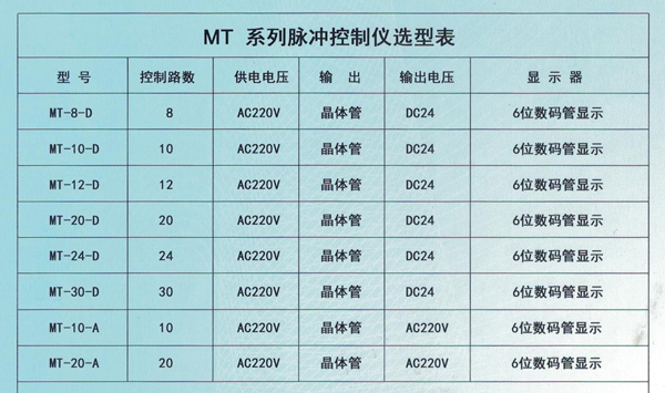 MT智能型控制儀兩個電位器調節和按鍵設置參數或四個按鍵設置參數,使用只有脈沖閥的除塵器上
